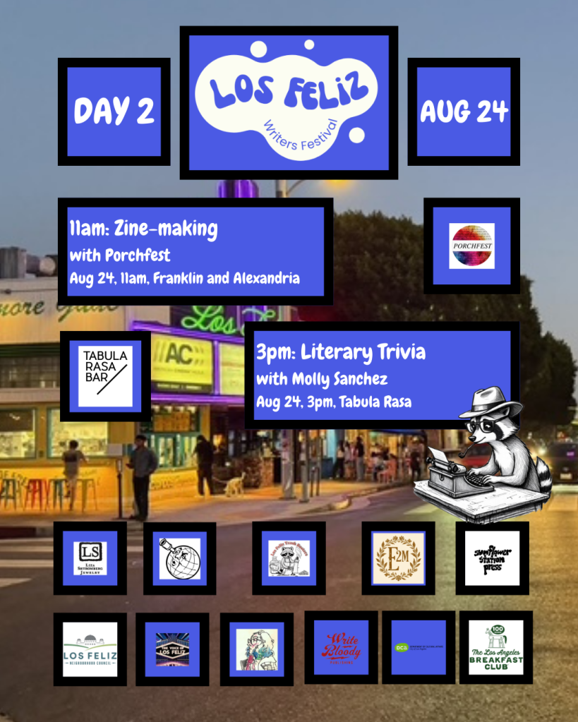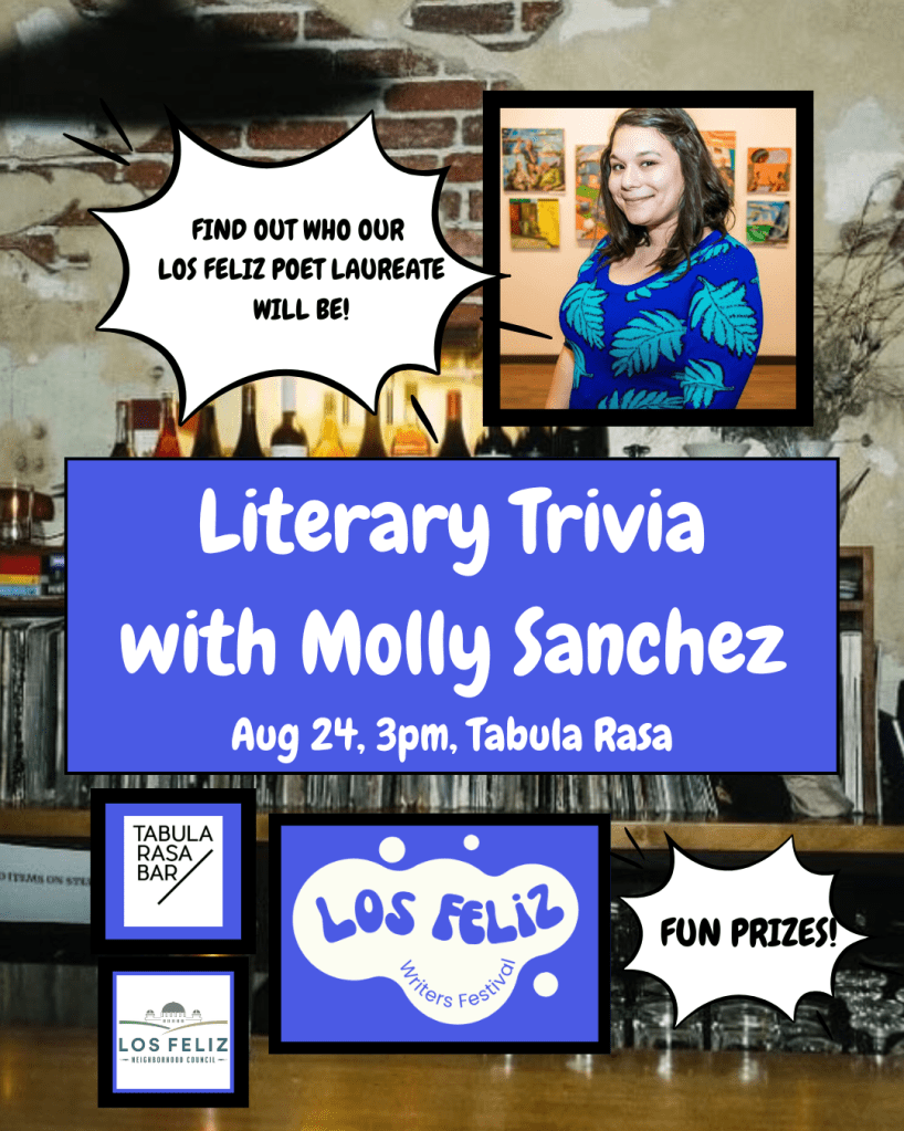For our festival finale, come join us for some literary trivia hosted by Molly Sanchez and to announce our first Los Feliz Poet Laureate!